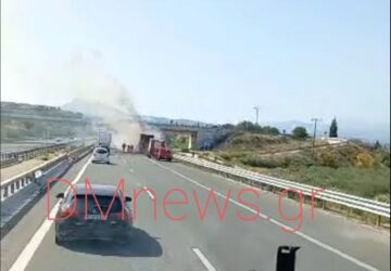 Συναγερμός σήμανε στις Αρχές πριν λίγη ώρα… όταν νταλίκα τυλίχθηκε στις φλόγες ενώ κινούνταν στην Εθνική Οδό Κορίνθου – Πατρών,