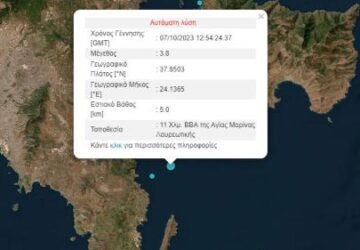 Σεισμός μεγέθους 3,8 βαθμών της κλίμακας Ρίχτερ έγινε αισθητός στην Αττική λίγο πριν τις 16:00… Το επίκεντρο σύμφωνα με το