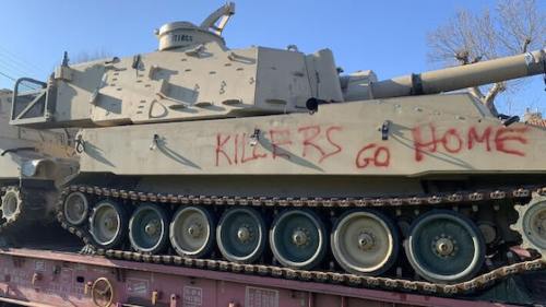 «killers go home» έγραψαν με κόκκινη μπογιά πάνω σε αμερικανικά άρματα μάχης, το Σάββατο το απόγευμα… μέλη του ΚΚΕ και της ΚΝΕ!