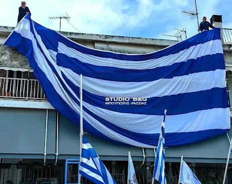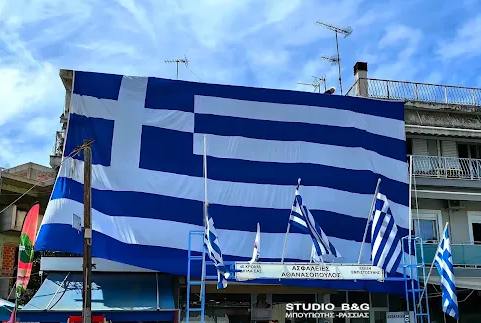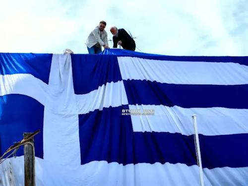 Μία τεράστια Ελληνική Σημαία τοποθέτησε ο Σύλλογος Φίλοι της Ελληνικής Σημαία, στην Νέα Κίο Αργολίδας σήμερα το πρωί. Συγκεκριμένα, η σημαία 137 τ.μ ανεμίζει περήφανη σε κτίριο της πλατείας και προκαλεί μεγάλη εντύπωση, καθώς πρόκειται για μία από τις μεγαλύτερες ελληνικές σημαίες στη χώρα μας.