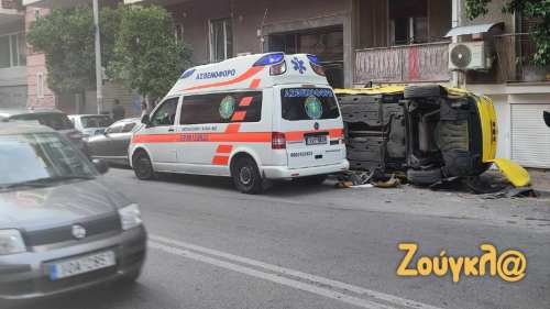 Αναλυτικότερα, ένα ασθενοφόρο του ΕΚΑΒ ενώ κινούνταν στον δρόμο με ταχύτητα περίπου 50χλμ./ώρα επιχείρησε να αποφύγει μοτοσυκλέτα και έπεσε πάνω σε ένα σταθμευμένο ταξί. Από τη σύγκρουση το ταξί αναποδογύρισε, ενώ το ασθενοφόρο σταμάτησε στα μπροστινά παρκαρισμένα οχήματα. Ευτυχώς, δεν υπήρχαν πεζοί εκείνη την ώρα στο σημείο και δεν σημειώθηκαν τραυματισμοί.