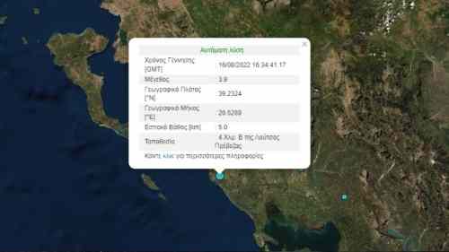 Σεισμική δόνηση μεγέθους 3,9 βαθμών της Κλίμακας Ρίχτερ σημειώθηκε στις 18:34 το απόγευμα της Τρίτης (16/8) στην Πάργα. Σύμφωνα με το Γεωδυναμικό Ινστιτούτο, το επίκεντρο του σεισμού εντοπίζεται 4 χιλιόμετρα βόρεια της Λούτσας Πρέβεζας, ενώ το εστιακό βάθος υπολογίζεται στα 5 χιλιόμετρα.