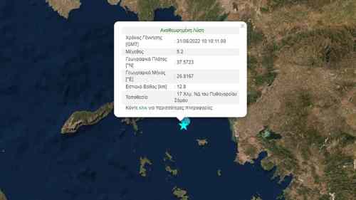 Ισχυρή σεισμική δόνηση μεγέθους 5,2 βαθμών της Κλίμακας Ρίχτερ αναστάτωσε τους κατοίκους της Σάμου σήμερα στις 13:10 το μεσημέρι.