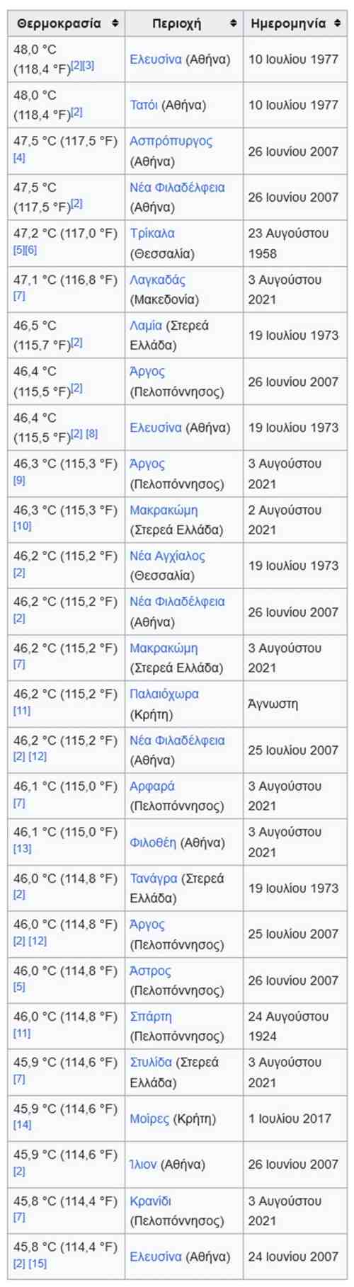 Δείτε αναλυτικά τα επίσημα στοιχεία των υψηλότερων θερμοκρασιών που καταγράφηκαν διαχρονικά στην Ελλάδα: