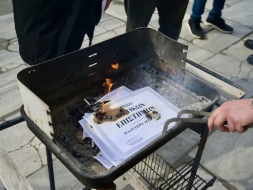 Άναψαν τα κάρβουνα αλλά αντί για σουβλάκια, έψησαν… τα πτυχία τους, φοιτητές στην Θεσσαλονίκη ως ένδειξη διαμαρτυρίας σχετικά με τα ιδιωτικά πανεπιστήμια. Σημειώνεται ότι τα πτυχία δεν ήταν τα γνήσια αλλά αντίγραφα.