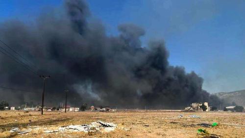 Σύμφωνα με δηλώσεις του αντιδημάρχου Ασπροπύργου, Μιχάλη Ψωμιάδη, έχουν καεί πέντε αποθήκες και δύο εργοστάσια, ενώ λόγω των θυελλωδών ανέμων δεν μπορούν να πετάξουν τα εναέρια μέσα. Εστία φωτιάς υπάρχει και στο αεροδρόμιο της Ελευσίνας, περιμετρικά, χωρίς να υπάρχει κίνδυνος όπως ανέφερε στον ΑΝΤ1 ο αντιπεριφερειάρχης Αττικής στην εκπομπή «Καλοκαίρι Μαζί».