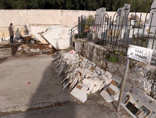 Έντονη αναστάτωση και κύμα αγανάκτησης έχει προκαλέσει στους πολίτες της Καλαμάτας η αποκάλυψη ότι φωτογραφίες, ονόματα και προσωπικά κειμήλια νεκρών βρέθηκαν πεταμένα δίπλα σε κάδους και διάσπαρτα στο έδαφος του κοιμητηρίου, έπειτα από παρεμβάσεις σε οστεοφυλάκια. Οι εικόνες που είδαν το φως της δημοσιότητας έχουν σοκάρει συγγενείς και κατοίκους, οι οποίοι κάνουν λόγο για πλήρη έλλειψη σεβασμού προς τη μνήμη των εκλιπόντων.
