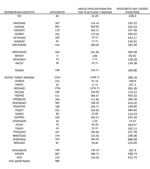 Δείτε αναλυτικά την γεωγραφική κατανομή των κρουσμάτων: