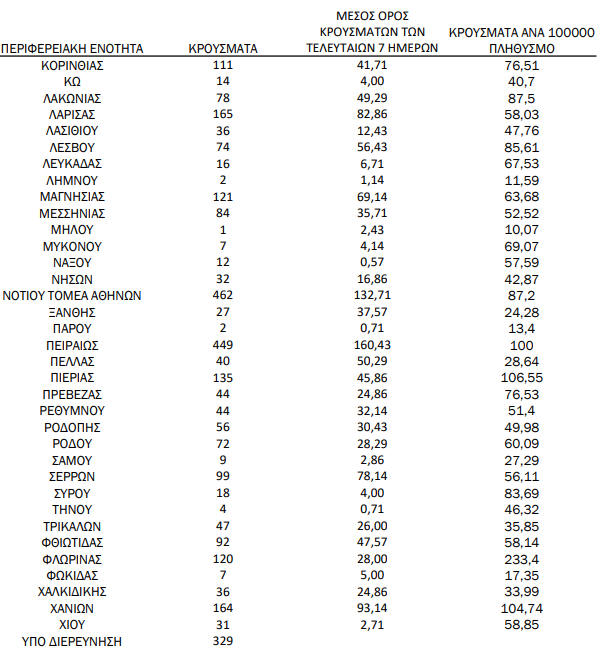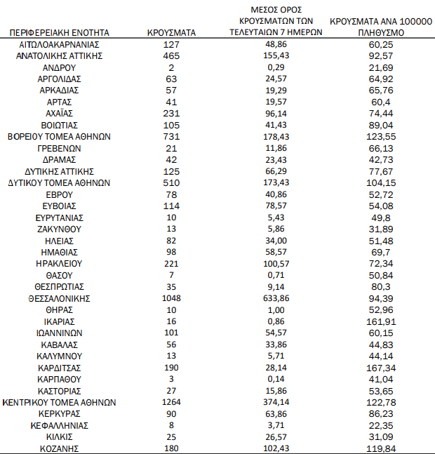 Δείτε αναλυτικά την γεωγραφική κατανομή κρουσμάτων σε ολόκληρη την χώρα: