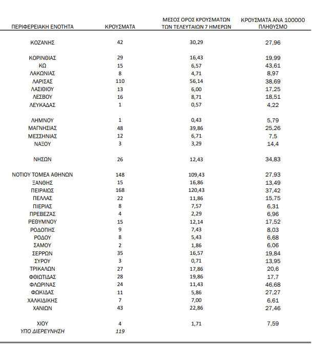 Δείτε αναλυτικά την γεωγραφική κατανομή των κρουσμάτων: