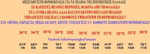 Δείτε τη μέση πορεία της μέγιστης θερμοκρασίας στη χώρα μας, το επόμενο 10ήμερο στον πίνακα που ακολουθεί: