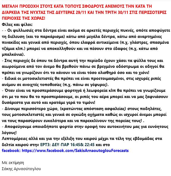 Συγκεκριμένα, ο γνωστός Μετεωρόλογος ενημέρωσε τους πολίτες και έδωσε οδηγίες προφύλαξης από το επικίνδυνο καιρικό φαινόμενο: