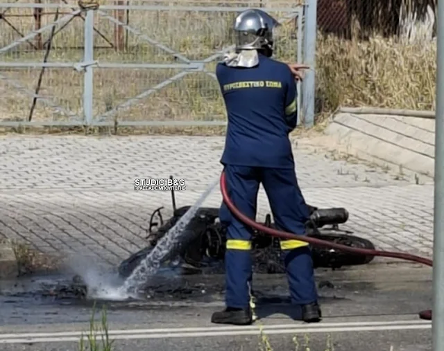 Στο σημείο έφτασε άμεσα όχημα της Πυροσβεστικής Υπηρεσίας Ναυπλίου, καταφέρνοντας με ταχύτατες κινήσεις να θέσει τη φωτιά υπό έλεγχο. Ωστόσο, η μηχανή είχε ήδη καταστραφεί ολοκληρωτικά.