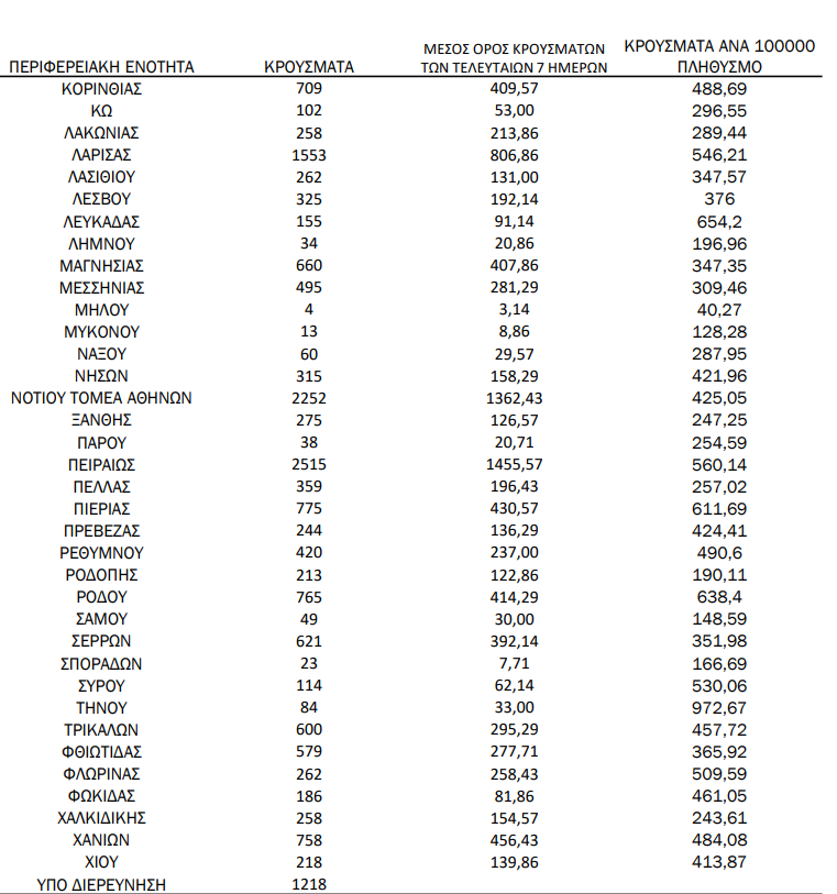 Δείτε αναλυτικά, την γεωγραφική κατανομή των κρουσμάτων: