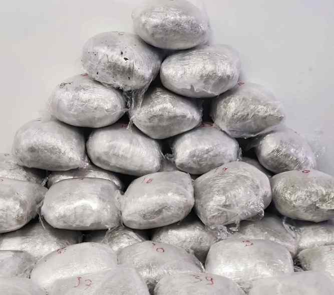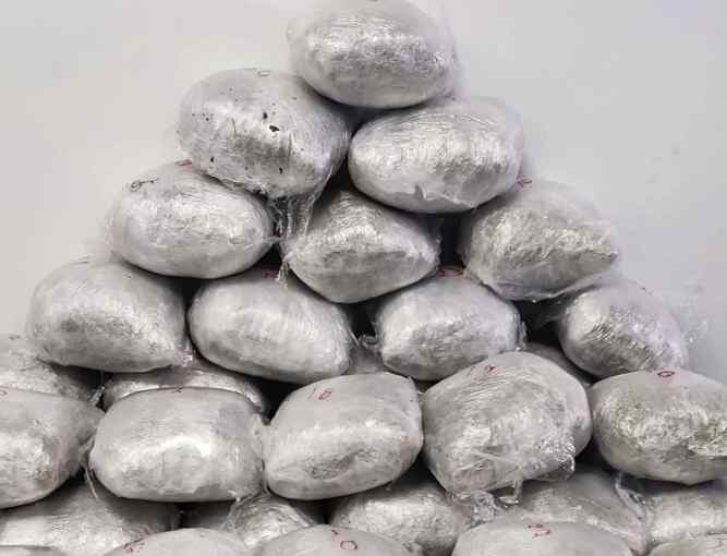 Ενώ κινούνταν με το αυτοκίνητο, πέταξε 2 από τους 39 σάκους που μετέφερε και περιείχαν χασίς σε μία προσπάθεια να ξεφορτωθεί όσο ”εμπόρευμα” μπορούσε. Δεν τα κατάφερε όμως γιατί οι Αστυνομικοί τον ακινητοποίησαν. Όπως προέκυψε από την έρευνα, μετέφερε σάκους γεμάτους με 39 συσκευασίες χασίς, συνολικού βάρους 43 κιλών και 336 γραμμαρίων τους οποίους είχε παραλάβει νωρίτερα από μεθοριακή περιοχή του Κιλκίς, μαζί με συνεργό του που επέβαινε στο ίδιο όχημα και αναζητείται. Το αυτοκίνητο κατασχέθηκε ως μέσο μεταφοράς ναρκωτικών ουσιών καθώς και ένα κινητό τηλέφωνο που βρέθηκε στην κατοχή του.