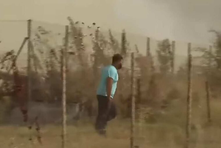 Συγκεκριμένα, το συνεργείο της ΕΡΤ βρέθηκε στο Βελεστίνο και μετέδωσε ζωντανά στο δελτίο ειδήσεων τις εξελίξεις με την φωτιά ενώ στο πλάνο φαίνεται ο βοσκός που μαζί με τον αδερφό του προσπαθούν να σώσουν την περιουσία τους. Μάλιστα, η ρεπόρτερ βλέποντας την φωτιά να πλησιάζει αναφέρεται στον άνδρα και λέει ότι εάν δεν απομακρυνθεί θα καεί… κάτι που δυστυχώς έγινε!