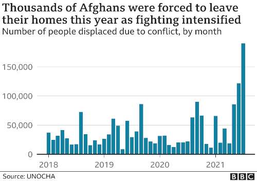 Ακόμη και πριν από την ανάκτηση του ελέγχου από τους Ταλιμπάν, περισσότεροι από 550.000 άνθρωποι είχαν αναγκαστεί να εγκαταλείψουν τα σπίτια τους φέτος λόγω των συγκρούσεων, σύμφωνα με την UNHCR.