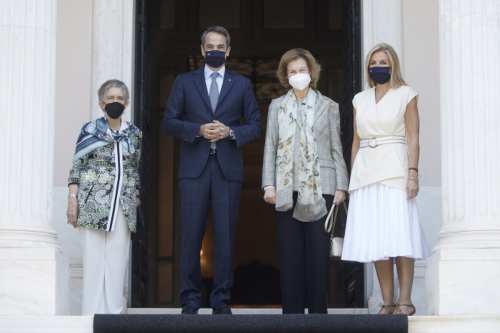 Ο Πρωθυπουργός Κυριάκος Μητσοτάκης και η σύζυγός του Μαρέβα Γκραμπόφσκι – Μητσοτάκη υποδέχθηκαν σήμερα στο Μέγαρο Μαξίμου τη Βασίλισσα της Ισπανίας Σοφία, η οποία συνοδευόταν από την αδερφή της Ειρήνη.