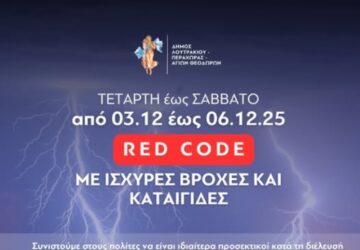 ΤΟΠΙΚΑ ΝΕΑ 5 months ago Η κακοκαιρία «χτυπάει» το Λουτράκι και ο Δήμος θωρακίζεται! Ο καιρός… αγριεύει και ο Δήμος Λουτρακίου – Περαχώρας – Αγίων Θεοδώρων μπαίνει επίσημα σε κατάσταση αυξημένης επιφυλακής, καθώς το
