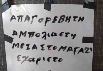 “Απαγορέβητη αμπόλιαστη μέσα στο μαγαζί. Ευχαριστό”, είναι το μήνυμα που θα διαβάσει γραμμένο σε ένα χαρτί και κολλημένο στην πόρτα