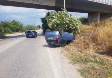 Αυτοκίνητο ανατράπηκε επί της παλαιάς Κορίνθου Πατρών (ύψος γέφυρας αρχαίας Κορίνθου) όταν ο οδηγός έχασε τον έλεγχό του, κάτω από