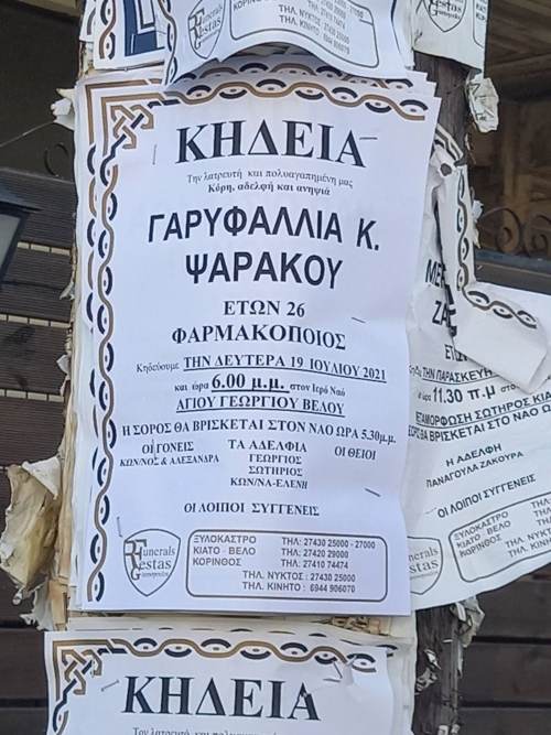 Θρήνος στο Βέλο Κορινθίας για την 26χρονη Γαρυφαλλιά Ψαράκου που δολοφονήθηκε στην Φολέγανδρο από τον 30χρονο φίλο της. Κανένας δεν φανταζόταν ότι το νήμα της ζωής της θα κοβόταν τόσο απότομα και τόσο άδικα, στις πρώτες διακοπές που έκανε τα τελευταία χρόνια, όπως είπε η μητέρα της.