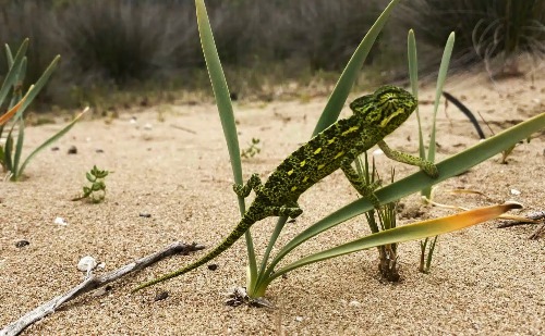 Ένα καμουφλαρισμένο ερπετό που ακούει στο όνομα ”Chamaeleo africanus” αποφάσισε να κάνει τις διακοπές του… στην Πελοπόννησο! Μάλιστα δείχνει να έχει αδυναμία στην θάλασσα αφού εντοπίστηκε τον περασμένο Μάιο από φοιτητές της Βιολογίας του Εθνικού και Καποδιστριακού Πανεπιστημίου Αθηνών σε παραλία της βορειοανατολικής Πελοποννήσου εντός της προστατευόμενης περιοχής Λάμιας και Δάσους Στροφυλιάς (GR2320001).