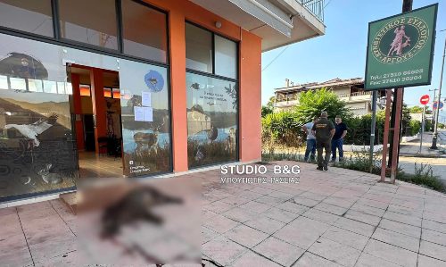 Ένα νεκρό αγριογούρουνο αντίκρυσαν σήμερα το πρωί, τα μέλη του Κυνηγετικού Συλλόγου Άργους έξω από τα γραφεία τους.