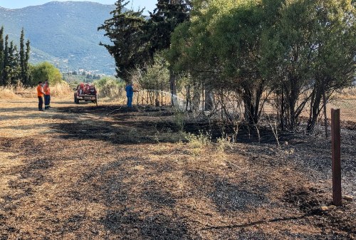 Η φωτιά έκαψε περίπου 1 στρέμμα με αγριόχορτα, προξένησε ζημιές σε τρία κυπαρίσσια και μια αμυγδαλιά, χωρίς ευτυχώς να απειληθούν ανθρώπινες ζωές ή κτιριακές υποδομές.