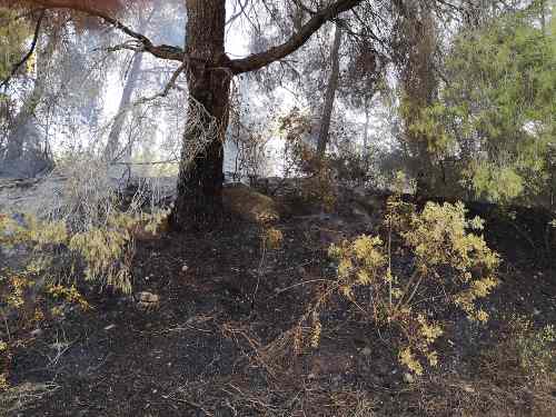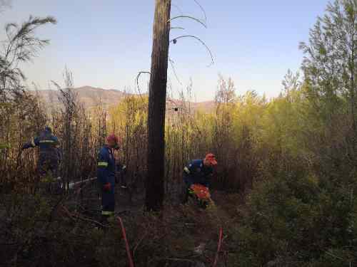 Στο σημείο παραμένουν οχήματα της ΠΥ Κορίνθου για τυχούσα αναζωπύρωση.