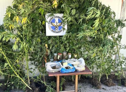 Ο δράστης δεν κατάφερε όμως να κρύψει την παράνομη καλλιέργεια αφού Άνδρες του Τμήματος Ασφάλειας Κορίνθου έκαναν έφοδο εχθές το πρωί και τον συνέλαβαν για ναρκωτικά. Βρεθήκαν στην πόρτα του 61χρονου έπειτα από πληροφορίες και πραγματοποίησαν έρευνα τόσο στο εσωτερικό του σπιτιού όπου εντόπισαν 1.009 γραμμάρια χασίς όσο και στην αποθήκη όπου εντόπισαν 16 δενδρύλλια κάνναβης, ύψους έως 2,7 μέτρω, τα οποία εκριζώθηκαν και κατασχέθηκαν.