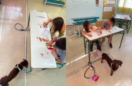 Την Πέμπτη (5/6) μαθητές και μαθήτριες έκαναν μάθημα ορθογραφίας και ζωγραφικής με τη βοήθεια της δασκάλας τους κ. Νικήτα Ηρώ και τον Ερρίκο που είναι εκπαιδευμένος στον χώρο της θεραπευτικής ή/και υποστηρικτικής εκπαίδευσης με ζώα (Animal-Assisted Education ή Animal-Assisted Therapy). Λειτουργεί ως ”τετράποδος βοηθός” και εμψυχωτής μέσα στην τάξη δημιουργώντας θετικό κλίμα κάνοντας τα παιδιά να νιώθουν ασφάλεια και άνεση, ενισχύει την συγκέντρωσή τους και μετατρέπει τη μάθηση σε ευχάριστο και δημιουργικό παιχνίδι.
