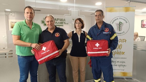 Μία σημαντική προσφορά με ουσιαστικό αντίκτυπο στο πεδίο της πολιτικής προστασίας και του εθελοντισμού πραγματοποιήθηκε σήμερα, Πέμπτη (24/7). Ο Σύλλογος Πυροπροστασίας Δασών Κορίνθου παρέλαβε φαρμακευτικό υλικό και σακίδια πρώτων βοηθειών που θα εξοπλίσουν τα πυροσβεστικά του οχήματα, ενισχύοντας την ασφάλεια και την ετοιμότητα των πληρωμάτων του.