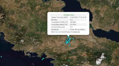 Σεισμική δόνηση μεγέθους 3,8 Ρίχτερ σημειώθηκε στις 20.32, 14 χλμ ανατολικά, βορειοανατολικά της Θήβας με εστιακό βάθος στα 10 χιλιόμετρα.