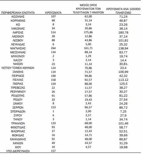 Δείτε αναλυτικά την κατανομή των κρουσμάτων: