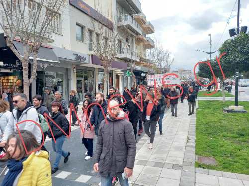 Βασικό αίτημα της συγκέντρωσης εκτός από την αύξηση μισθών, την επαναφορά δώρων, τις συλλογικές συμβάσεις και την στελέχωση με μόνιμο προσωπικό σε δημόσιους τομείς, όπως της υγείας και της παιδείας ήταν να μην συγκαλυφθεί η τραγωδία στα Τέμπη που στοίχισε την ζωή 57 παιδιών… Παιδιά που ζητούν την δικαίωση καθώς δεν έχουν αποδοθεί ευθύνες και δεν έχουν τιμωρηθεί οι ένοχοι.