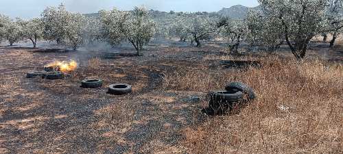 Η φωτιά έκαψε ξερά χόρτα σε ελαιώνα.