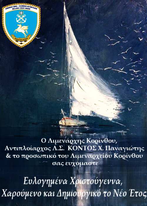 Ο Λιμενάρχης Κορίνθου, Αντιπλοίαρχος Λ.Σ Κοντός Χ. Παναγιώτης και το προσωπικό του Λιμεναρχείου Κορίνθου ευλογημένα Χριστούγεννα και το 2022 να είναι ευλογημένο, γεμάτο χαρά.
