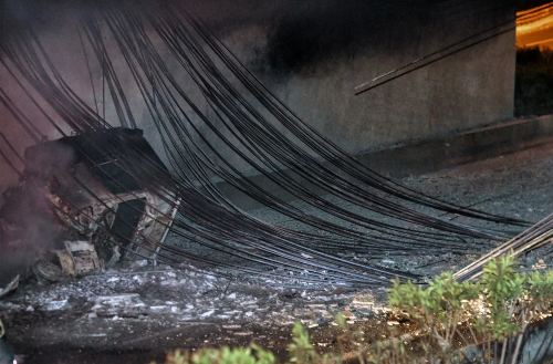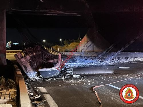 Σοβαρές είναι οι υλικές ζημιές τόσο στο βυτιοφόρο που έγινε στάχτη όσο και στην αερογέφυρα κάτω από την οποία εξετράπη το βυτιοφόρο και λόγω της υψηλής θερμοκρασίας που αναπτύχθηκε από τη φωτιά προκλήθηκαν επίσης ζημιές. Μάλιστα στο σημείο βρίσκεται ο υφυπουργός Υποδομών Νίκος Ταχιάος και μηχανικοί του υπουργείου που διενεργούν έλεγχο στατικότητας της γέφυρας με κλιμάκια πυροσβεστικής, αστυνομίας και εκπροσώπους των παραχωρησιούχων.