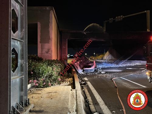 Ο μοναδικός τραυματίας είναι ο οδηγός, ο οποίος δεν φέρει εγκαύματα παρά ελαφρά τραύματα και μεταφέρθηκε στο Νοσοκομείο Κορίνθου.