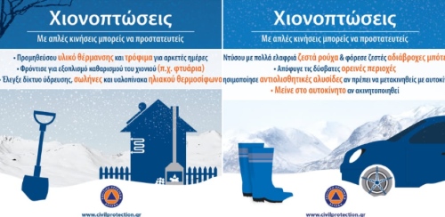 Σε περιοχές όπου προβλέπεται η εκδήλωση χιονοπτώσεων και παγετού: