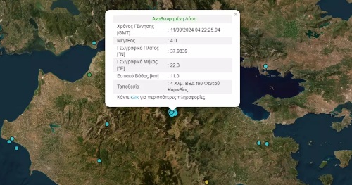 Αναλυτικότερα ο σεισμός 4 Ρίχτερ σημειώθηκε στις 07:25, τέσσερα χλμ. βορειοδυτικά του Φενεού και με εστιακό βάθους 11 χλμ. Σημειώνεται ότι είχαν προηγηθεί μικρότερες δονήσεις με τον πρώτο να σημειώνεται στις 07:10 και τον δεύτερο περίπου 19 λεπτά αργότερα, της κλίμακας 2,8 και 3 αντίστοιχα.