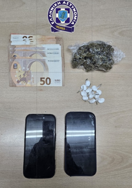 Κατά τον έλεγχο, οι Αστυνομικοί εντόπισαν στην κατοχή του ποσότητα κάνναβης συνολικού βάρους 25,2 γραμμαρίων, ποσότητα κοκαΐνης βάρους 7,2 γραμμαρίων, δύο κινητά τηλέφωνα, καθώς και το χρηματικό ποσό των 465 ευρώ, το οποίο κατασχέθηκε ως προερχόμενο από αξιόποινες πράξεις.