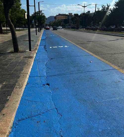 Μπλε βάφτηκε η δεξιά πλευρά της πιάτσας, των TAXI κατεβαίνοντας την οδό Εθνικής Αντιστάσεως με σκοπό να ξεχωρίζει και να είναι πιο ευδιάκριτη στους πελάτες αλλά και σε οδηγούς που ”κατά λάθος” παρκάρουν στο σημείο! Οι εργασίες δεν έχουν ολοκληρωθεί αφού αναμένεται αύριο να βαφτεί και η αριστερά πλευρά της πιάτσας ενώ θα προστεθεί και μακέτα.