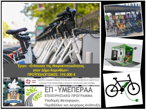 Το έργο, ύψους 309.837,56 ευρώ αφορά την «Ενίσχυση της Μικροκινητικότητας στο Δήμο Κορινθίων» και είχε εγκριθεί με απόφαση της Οικονομικής Επιτροπής στις 28 Μαρτίου 2023, επί Δημαρχίας Βασίλη Νανόπουλου. Η χρηματοδότηση προήλθε από το πρόγραμμα του Υπουργείου Ανάπτυξης και Επενδύσεων «Βιώσιμη Μικροκινητικότητα μέσω Συστήματος Κοινόχρηστων Ποδηλάτων».