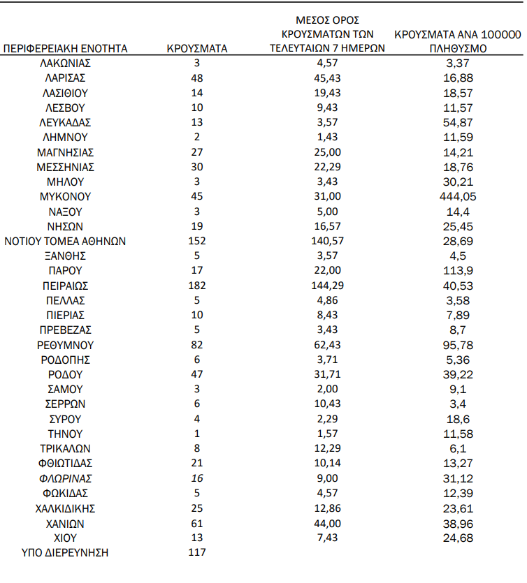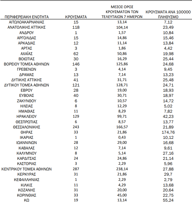 Δείτε αναλυτικά την κατανομή των κρουσμάτων: