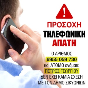 Τις τελευταίες ώρες, πολλοί δημότες του Δήμου Σικυωνίων έχουν πέσει θύματα τηλεφωνικής απάτης από άγνωστο άτομο που συστήνεται ως “Πέτρος Γεωργίου”. Αυτό το πρόσωπο προσπαθεί να πείσει ότι εκπροσωπεί τον Δήμο, όμως δεν έχει καμία σχέση με την πραγματική δημοτική αρχή.