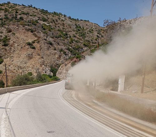 Η Υπηρεσία Καθαριότητας του Δήμου επενέβη άμεσα, στέλνοντας σάρωθρο για τον καθαρισμό ενώ η αστυνομία και η πυροσβεστική συνδράμουν για την ασφαλή ρύθμιση της κυκλοφορίας, αποτρέποντας δυσάρεστα ατυχήματα.