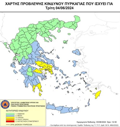 Ιδιαίτερα προσεκτικοί πρέπει να είναι κάτοικοι και επισκέπτες στην Κορινθία καθώς σύμφωνα με την Γενική Γραμματεία Πολιτικής Προστασίας ο κίνδυνος εκδήλωσης πυρκαγιάς, αύριο Τρίτη (4/6) είναι υψηλός (κατηγορία 3). Μάλιστα είναι πιθανό να εκδηλωθεί αυξημένος αριθμός πυρκαγιών, αρκετές από τις οποίες θα είναι δύσκολο να αντιμετωπιστούν εξαιτίας της μορφολογίας εδάφους, των τοπικών ανέμων κλπ.