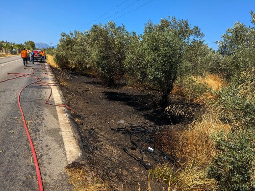 Η φωτιά που απείλησε να επεκταθεί στα γειτονικά ακαλλιέργητα ελαιοκτήματα, αντιμετωπίστηκε άμεσα και αποτελεσματικά. Ένα όχημα της Πυροσβεστικής Υπηρεσίας Κορίνθου, σε συνεργασία με τρία οχήματα του εθελοντικού συλλόγου SOSTE TO, επενέβησαν με ταχύτητα και επαγγελματισμό. Χάρη στις συντονισμένες προσπάθειες, περιορίστηκε και σβήστηκε πριν περάσει τον δρόμο και προλάβει να εξαπλωθεί περισσότερο.